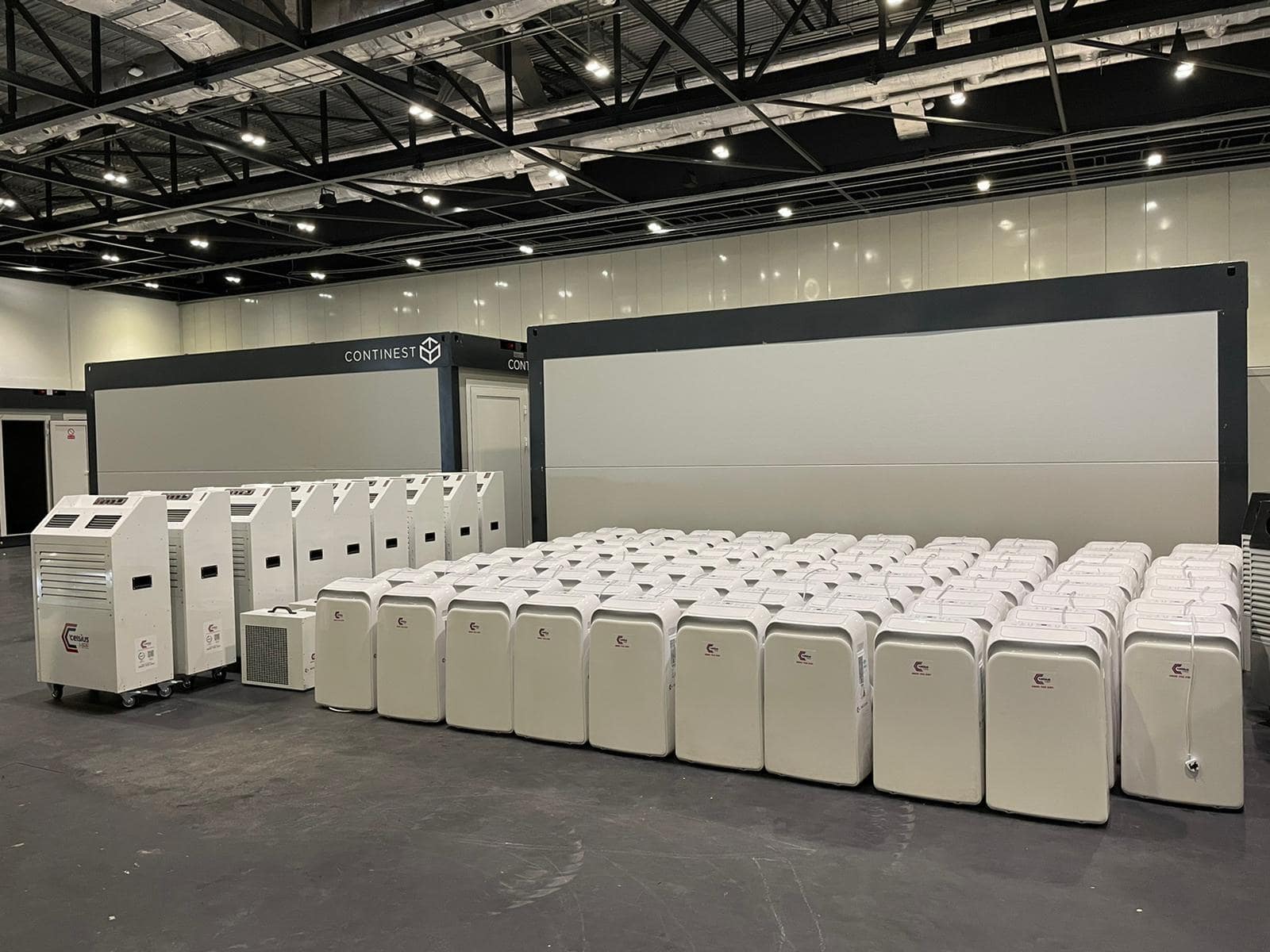 In total, we mobilised and delivered to site over 100 units. They were pre-tested and safely wrapped for protection at Celsius Hire prior to dispatch to ensure smooth operation on site. In addition, due to the number of units provided, Celsius Hire provided spare units to remain on site on standby so that the client could swiftly exchange in the unlikely event of fault on the day.